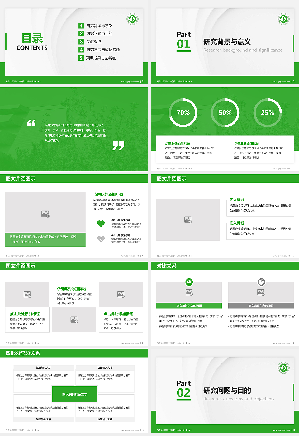 模板介绍西安财经学院行知学院硕士研究生/本科生毕业论文答辩/开题报告通用PPT模板下载是一份专门为西安财经学院行知学院师生量身定制的PPT模板。该模板编号为[#201134],一共有36页,内含1套比例为16:9、1套比例为4:3,格式为pptx的全矢量可编辑的标准化幻灯片模板,模板所有元素和内容均可修改,所见即所得。按照用途分类,属于开题报告,兼容PowerPoint、Keynote、WPS、石墨文档、永中Office、Google文档等常用办公软件。