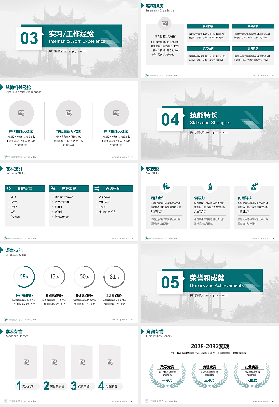 株洲职业技术学院教师/学生通用个人简历PPT模板下载是一套标准化的PPT模板,支持一键换色,只需按照以下步骤操作。
